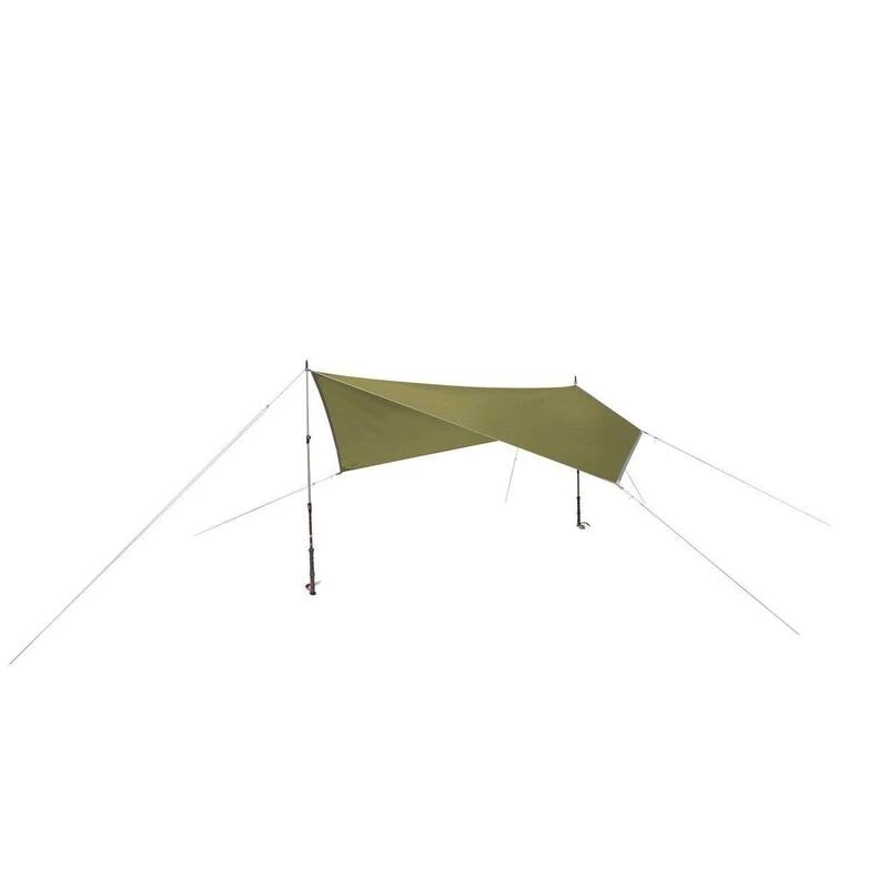 La forme cinq-côtés de la bâche Trail Wing offre un montage rapide et facile pour l’abri. Il peut être installé de plusieurs façons avec des cordes, des bâtons de randonnée, des pagaies et même des